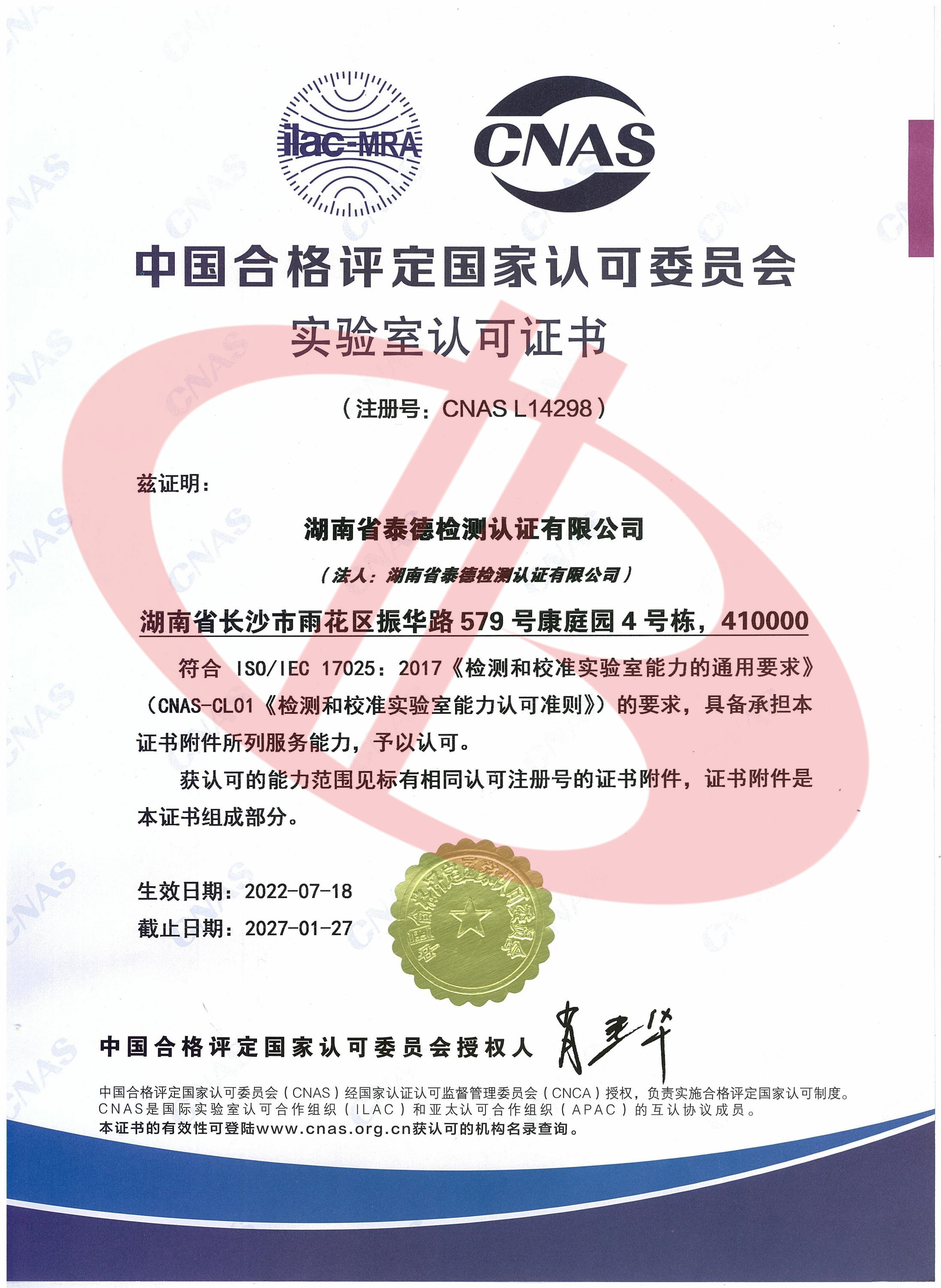 泰德檢測認證新增燃燒性能、煤炭及重金屬檢測資質(zhì)